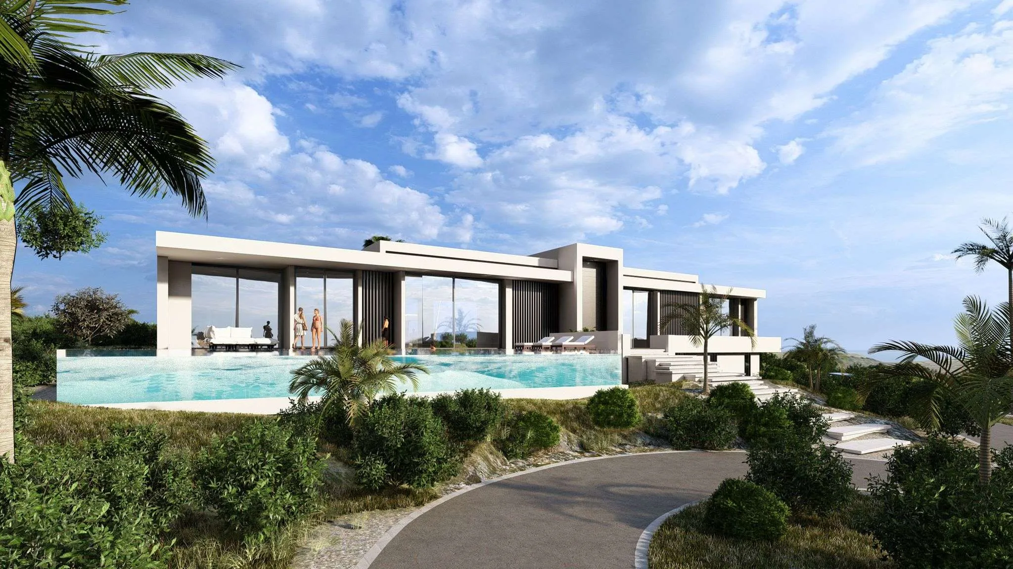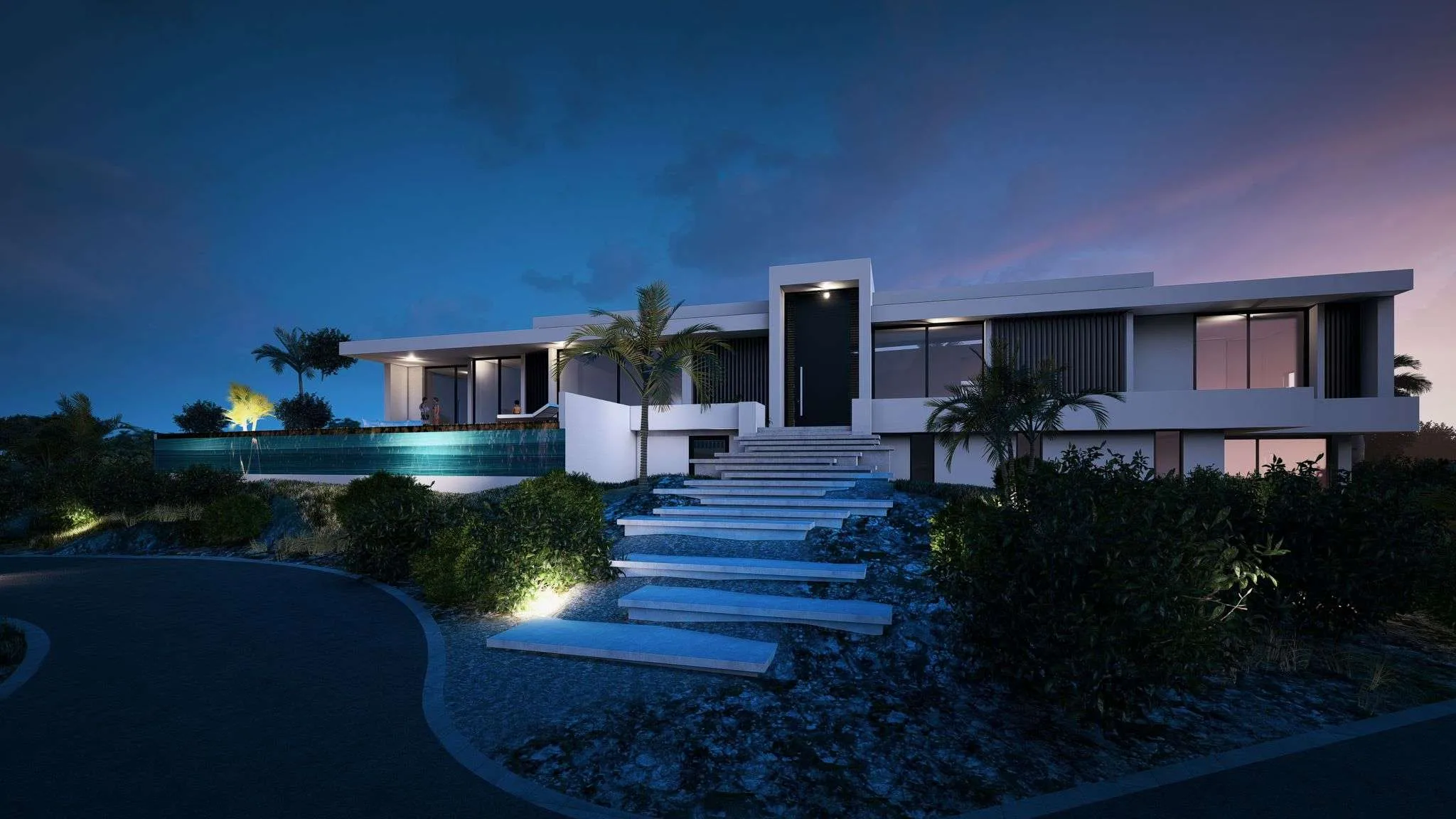 Set on a breathtaking plot of nearly 12,000 m² within the prestigious Coral Estate Resort, this turn-key luxury villa is one of the most extraordinary properties ever offered on the island of Curaçao. From the moment you arrive, the panoramic views over the Caribbean Sea, the lagoon, and the salt flats of Willibrordus set the tone for what awaits inside. The villa spans two levels and offers nine spacious bedrooms, each with a private en-suite bathroom and built-in wardrobes. On the ground floor, four generous bedrooms open directly onto expansive terraces and the surrounding gardens. Large glass sliding doors dissolve the boundary between indoors and outdoors, flooding the interiors with natural light and ocean breezes. The open-plan living and dining area flows seamlessly into a modern kitchen centered around a grand island, the natural heart of the home. A large outdoor shower on the front terrace adds a touch of barefoot luxury. The upper floor hosts five additional bedrooms and a second living room, all with sweeping sea views and access to shaded porches where sunsets over the Caribbean become a nightly ritual. Outside, an 18-meter swimming pool stretches the full length of the villa, an invitation to swim at any hour of the day. At the rear terrace, a private jacuzzi crowns the highest point of the garden, offering an unobstructed view across the lagoon that never loses its magic. A shaded gazebo provides the perfect retreat for quiet mornings surrounded by tropical birds and flowering gardens. Every detail of this villa has been designed for effortless, carefree living. An advanced solar system with batteries, two laundry rooms, a double garage, and a large water cistern ensure full self-sufficiency. The interiors are finished with premium 1.20 x 1.20 m tiles throughout, and the entire property is delivered fully furnished and turn-key, ready to enjoy from day one.